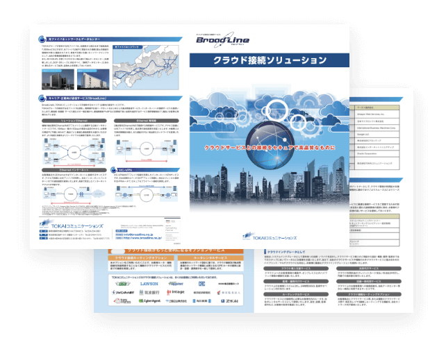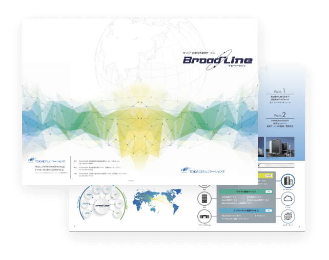 法人向け通信サービス「BroadLine」総合パンフレット法人向け通信サービス「BroadLine」では、関東から岡山までの光ファイバーを自社で保有することにより、高品質かつ安価な回線を実現しています。拠点間通信やクラウド接続、インターネット接続など、BroadLineのサービスラインナップに関する総合パンフレットです。